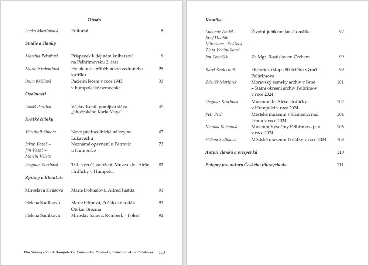 náš časopis nově vychází pod názvem Český jihovýchod: vlastivědný časopis pro Humpolecko, Kamenicko, Pacovsko, Pelhřimovsko a Počátecko. V letošním pilotním ročníku najdete příspěvky k dějinám regionu doslova od pravěku po současnost.